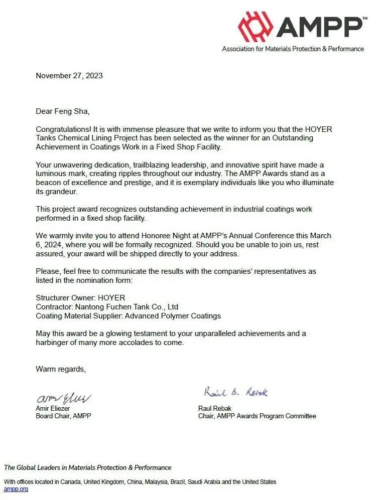 南通富凯先进的技术优势,过硬的产品质量,完备的质量服务体系,赢得了美国腐蚀工程师协会NACE NIICIP五星和美国防护涂料协会SSPC QP3级的双认证。
